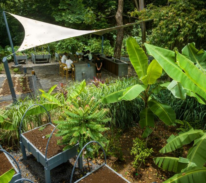 Planted with locally sourced seeds and saplings, the garden produces exceptional flavors, rooted in sustainability
