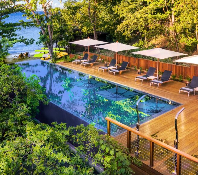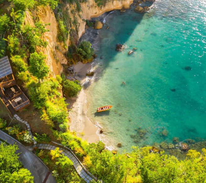 Suspended between sky and sea, these floating platforms nestled in Guava trees bring a whole new magic to our amenities. Overlook the sparkling Caribbean sea and Cabrits National Park, as you soak up the sun’s rays, let your mind unwind as you enjoy your favorite book or taste the flavors of the island with one of our craft cocktails.