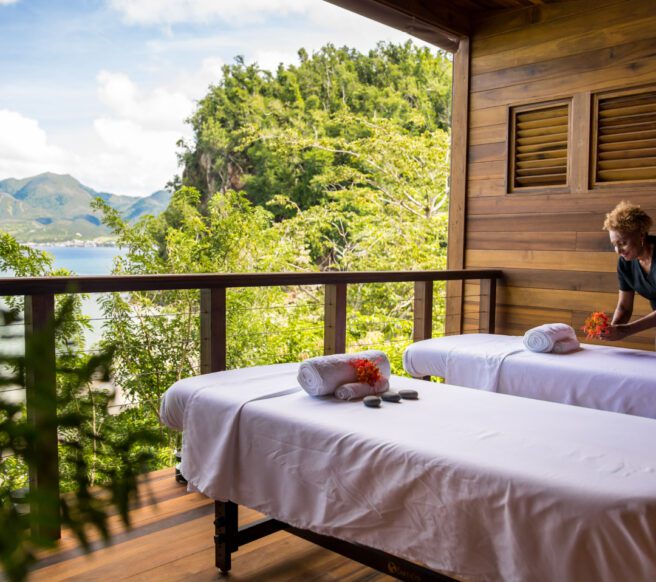 While a Secret Bay getaway is one enveloped in natural luxury—from the lush rainforest just beyond your bedroom to the open-air architecture of your state-of-the-art kitchen—we believe indulgence shouldn’t stop there. Our six-star resort amenities complete the most unrivaled, sensuous Caribbean escape. Begin your day with a rejuvenating yoga class at the Bwa Mang Wellness Pavilion, find peace of both body and mind at the Gommier Spa, indulge in fine dining or delight in succulent local fare at Bwa Denn Kitchen and cap your evening with cocktails on the Vetivert Sunset Deck. This is, truly, paradise found.