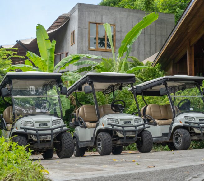 Access our fleet of electric vehicles for transportation to your Peninsula or Hillside villa
