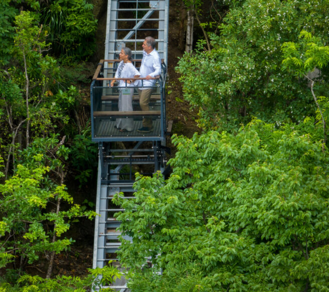 Ascend 400 linear feet into our coastal jungle, effortlessly accessing your Clifftop, Hillside or Summit villa