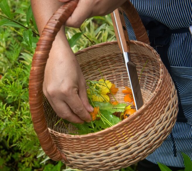 Forage for fresh vegetables, fragrant herbs and aromatic spices alongside our talented chefs