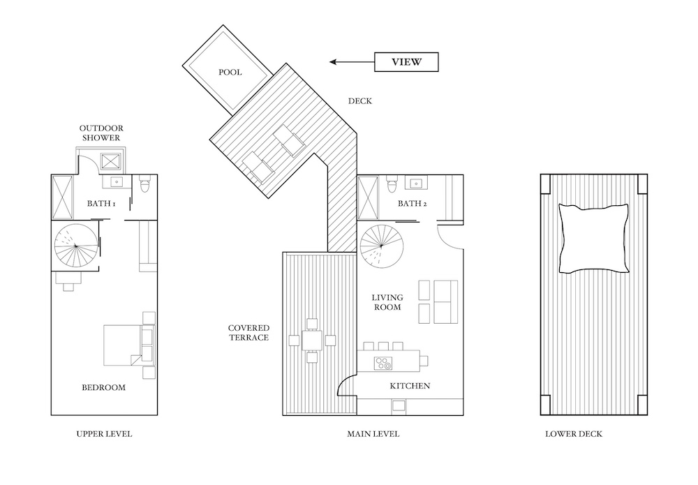 Tucked seamlessly into the lush landscape, this Ti-Fèy Villa is a sophisticated treehouse retreat designed for luxury and seclusion. Floor-to-ceiling glass walls invite panoramic jungle-to-ocean views, while a private plunge pool and a cantilevered outdoor rain shower immerse guests in nature. Offering a flexible layout, the villa features a king-size bedroom with an en-suite bathroom, a gourmet kitchen, and an additional half-bedroom with a separate bath. Thoughtfully designed for comfort and adaptability, it provides the perfect under-the-radar hideaway.
