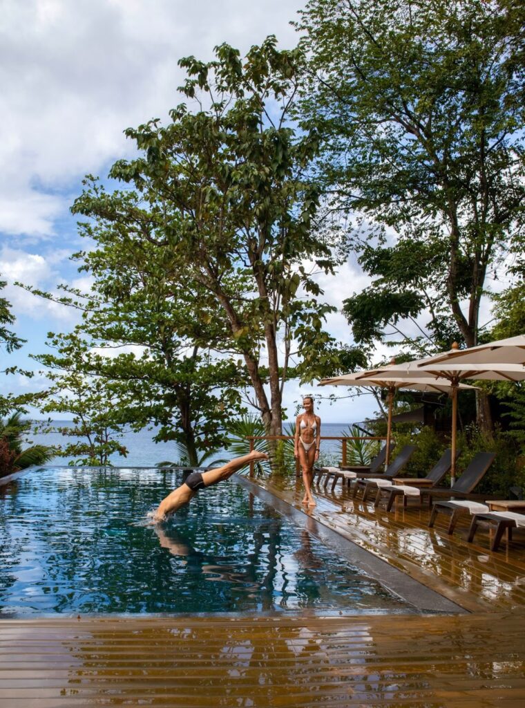 Couples can exchange vows on one of three white-sand beaches or atop a clifftop deck framed by rainforest and sea. Receptions unfold at Bwa Denn, a striking multi-level venue that opens to panoramic Caribbean Sea views and captures the essence of Dominica’s natural abundance. It’s a gathering place where locally grown ingredients and craft kombucha brewed on-site come together in celebration of Dominica’s creative spirit.